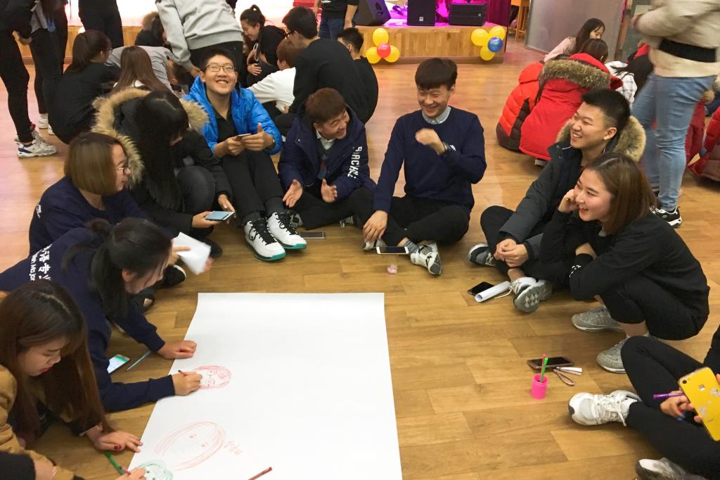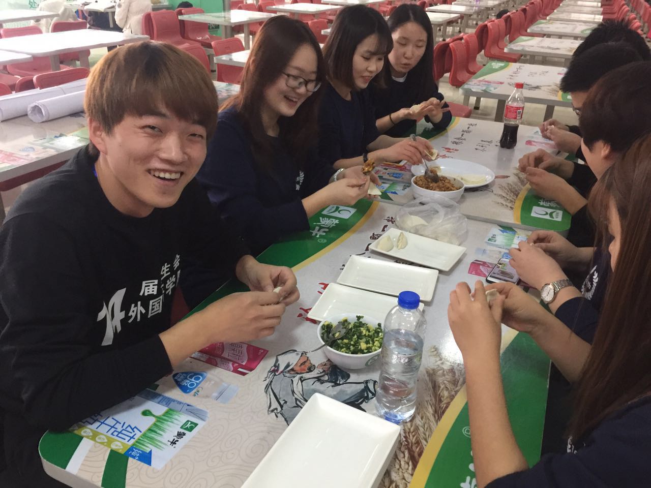 接下来,各学生会成员被随机分成六组,在游戏互动环节前大家利用了四十分钟的时间相互熟悉、沟通感情,每一组都绘制了代表自己队伍的海报,还起了队名、口号。随后的游戏环节共有三个游戏:吸管运输、手足嘴屁股、一反常态。经过三轮游戏,学生干部们增进了彼此之间的感情,更加明白了团结合作的重要性。游戏过后,老师及学生会成员前往二食堂二楼,准备午餐,集体包饺子。在报饺子过程中成员们欢声笑语,其乐融融,更加拉进了彼此的关系。最后,金老师对本次活动做了总结,并提出了几点期许。本次活动在融洽的气氛中圆满结束。