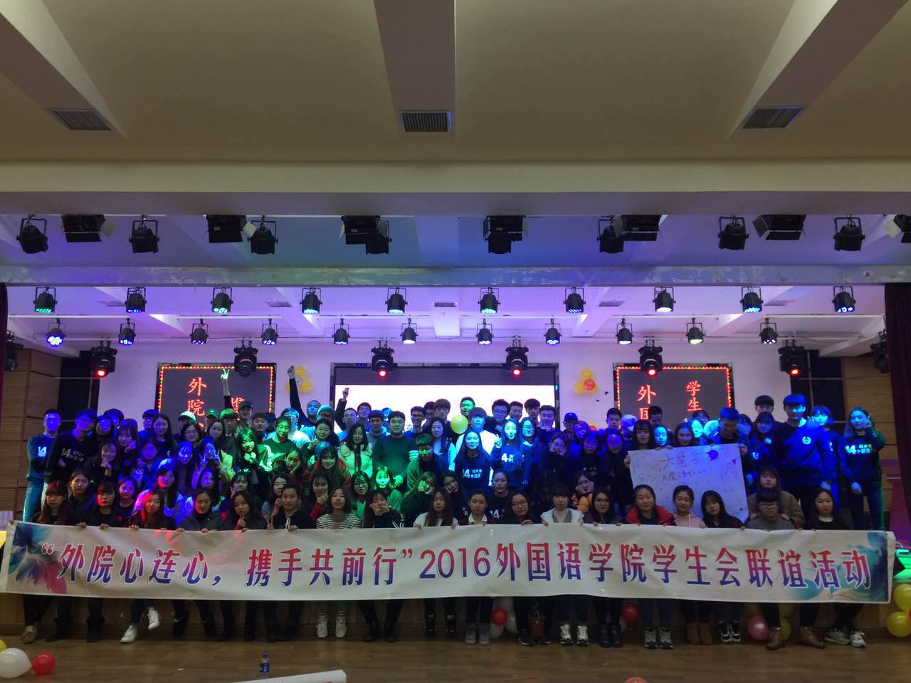 于2016年12月4日上午8 时在二食堂三楼小剧场成功举办“外院心连心,携手共前行”学生会联谊活动。学院团委书记兼英语专业辅导员金春宪老师、日语专业辅导员郭鲜丹老师、俄语专业辅导员严文颖老师、学院学生工作办公室干事金兰老师参加了本次活动。
