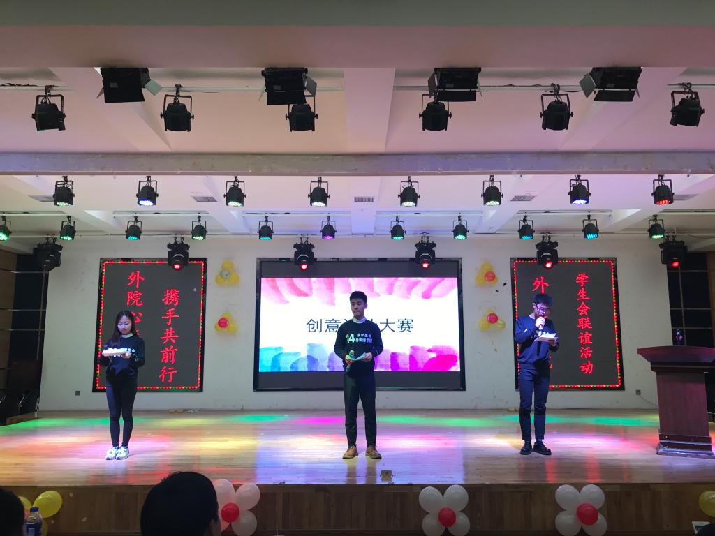 本次联谊活动分为活动创意设计大赛环节、文艺表演环节、游戏互动环节、午餐包饺子环节。首先,金春宪老师为本次活动致辞,致辞后联谊活动正式开始。学院学生会以及各专业学生会共派出六组代表参加本次的活动创意设计大赛,各位代表思维新颖,与大家分享了各式各样的活动创意。在这次活动创意设计比赛中得冠的方案会在学院下学期的活动中体现出来。英语专业学生会代表高航同学,俄语专业学生会代表边冠旭同学、院学生会代表徐圣铉同学分别荣获一、 二、三等奖。随后,学生会成员们为大家带来了精彩的舞蹈、歌曲表演。