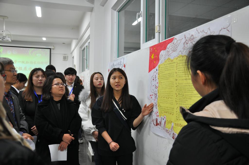 本次比赛由各班同学投票,各位老师,各班班长副班长,团支书以及日语专业学生会成员担任评委。同学们精心绘制的展报依次排列在教室里,活动开始首先各年级同学有序进场观看展报,并由讲解员为其讲解之后进行了投票。接下来是评委们的观看与提问环节,即使面对他们的一连串问题,讲解员们也能够游刃有余的进行解答,为自己班级的作品作了优秀的展示说明。之后评委们以公平,公正,公开为原则对各班展报进行了评分。经过同学投票及评委们的的共同评分,最终由2015级起点2班,2015级文化班荣获最优秀展报奖。活动最后,日语专业书记金秀东老师对各班展报进行了点评的同时,就两学一做与长征精神进行了重要发言与讲话,勉励同学们要有不怕艰难困苦,永久坚持的精神,在同学们热烈的掌声中,本次活动圆满落幕。