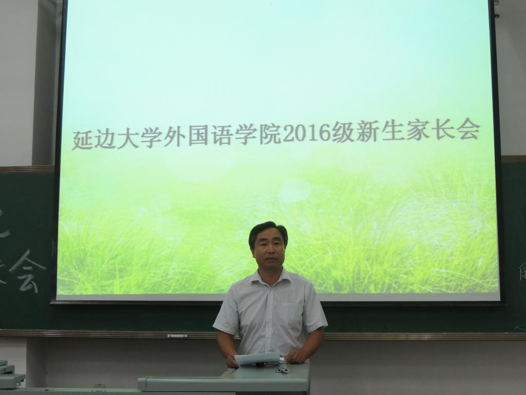 于西部教学楼104教室举行了2016级新生家长会。学院郑鲜日院长、学院党委赵亮书记、学院全永男副院长、学院崔雪波副院长、学院办公室李光赫主任、学生工作办公室裴香花主任、学院团委金春宪书记、各专业书记、主任及辅导员老师也出席了本次家长会。本次家长会由学院团委金春宪书记主持。