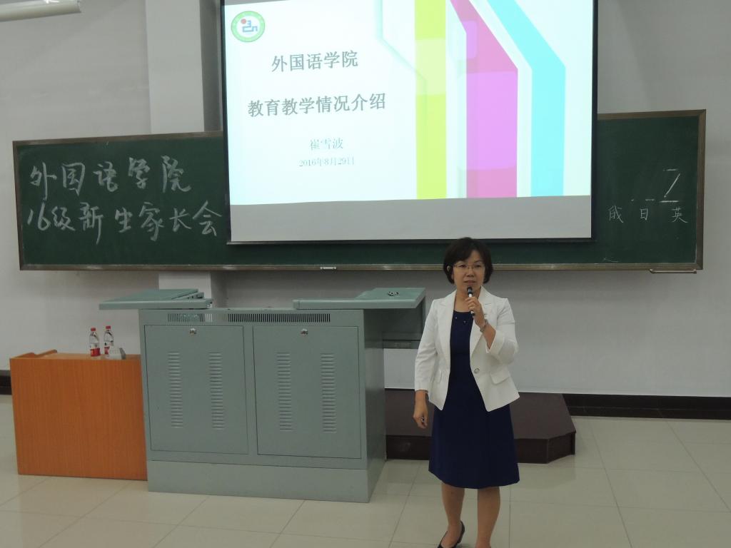 的支持和信任表示感谢。接着,学院崔雪波副院长进行教育教学情况介绍,分别由专业设置、本科专业培养方向等有关教育方面的问题进行详细介绍。全永男副院长介绍国际交流与校企合作方案,详细介绍了主要派遣国家及学校和交换留学生派遣形式等问题。最后,由学生工作办公室裴香花主任介绍学生工作情况、大学生各发展阶段学生会遇到到常见心理困惑和问题以及相应的干预措施、各类奖学金项目以及评定方法和大学生征兵入伍政策。本次2016级新生家长会圆满结束。