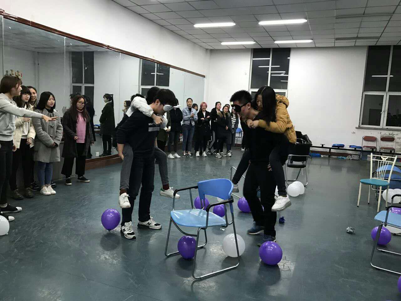 在本次心理团体系列活动中:以相互揉肩捶腿的方式进行了热身,增进了同学彼此间的了解,并在活动开始和结束时分别进行拍手默契实验,使其切身感受到团体活动的益处。在游戏比赛环节中,“心心相印(背夹球)”游戏使大家领悟总结经验和集思广益的重要性;“瞎子背瘸子”游戏让同学们明白共同团结努力的过程有时远比成败更重要;“顶气球比赛”启发了大家对于合作和相互激励的思考;“瞎子穿拖鞋”更是让同学们乐此不疲。活动结束后,同学们明显比开始之前更加放松、更加热情。在最后,几位同学分别对于本次活动做了总结发言,希望以后会有更多此类的活动能够让他们互相接触交流。