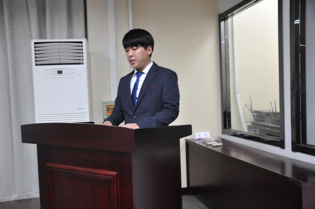 随后,由学院团委书记郭鲜丹老师宣读学院学生会干部换届决定以及第十五届院学生会名单。并为十四届学院学生会成员颁发证书,以感谢他们一年间对学院的贡献与付出。之后,学院第十五届学生会主席日语专业金灿一做竞职演说。金灿一同学对今后的工作计划做出展望,并表明要继续更好带领学院学生会开展各项工作的决心。