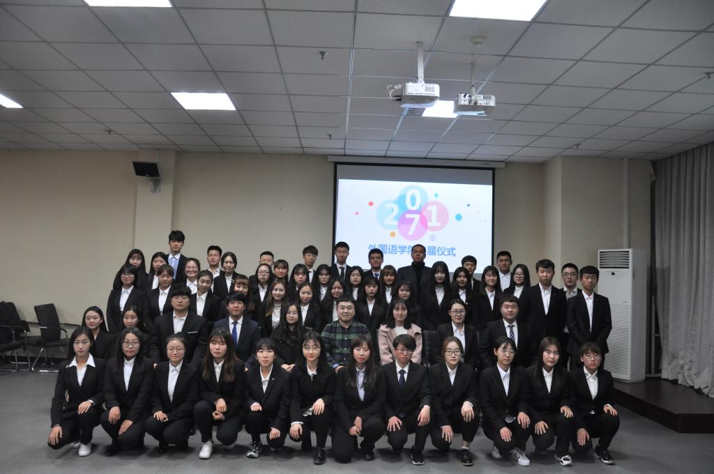 学工办主任兼英语专业辅导员金春宪老师,学院团委书记兼日语专业辅导员郭鲜丹老师,俄语专业辅导员周沫老师出席活动。本次换届仪式由学院学生会副主席高若彬主持。