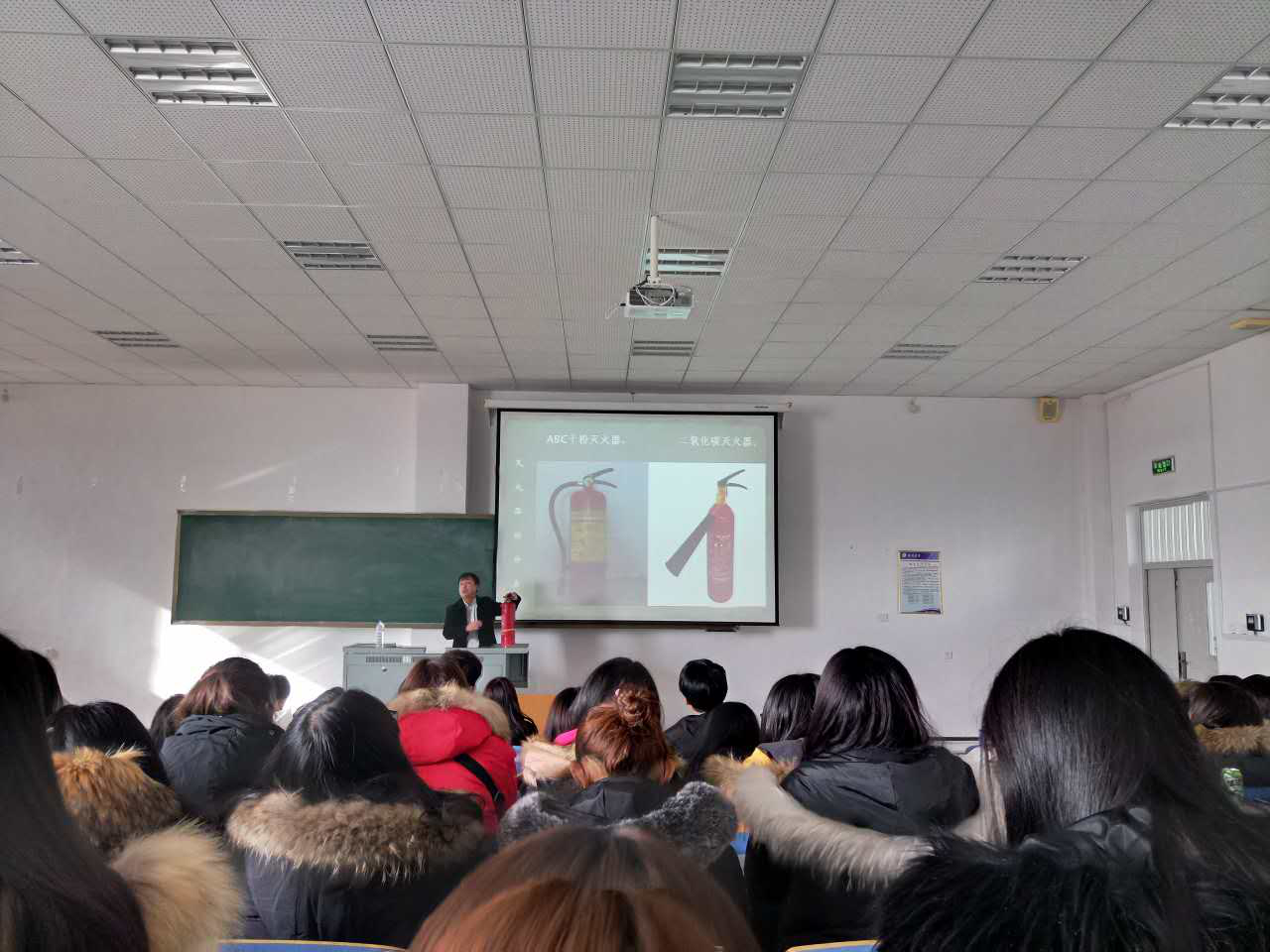 消防科主任姜浩老师为大家普及消防安全知识。讲座中,姜老师重点讲解了以往发生在我校内的火灾事件并逐一分析了起因,呼吁同学们要安全用电。此外,为同学们讲解了火灾发生后的应对措施。