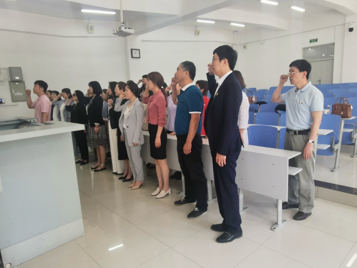 经过这次竞赛,外语部总支部委员会的教师党员们接受了党史的洗礼,并且收获颇丰。竞赛活动结束后,在大学外语部第一党支部栾新华书记的主持下,继续开展了主题党日活动。大学外语部第二党支部尹熙男书记带领全体教师党员们重温入党誓词,大家心潮澎湃,重新体会到了党员的真正使命。最后,大学外语部总支书记裴英玉对在党史学习教育过程中表现突出的党员同志进行表彰并做总结发言。