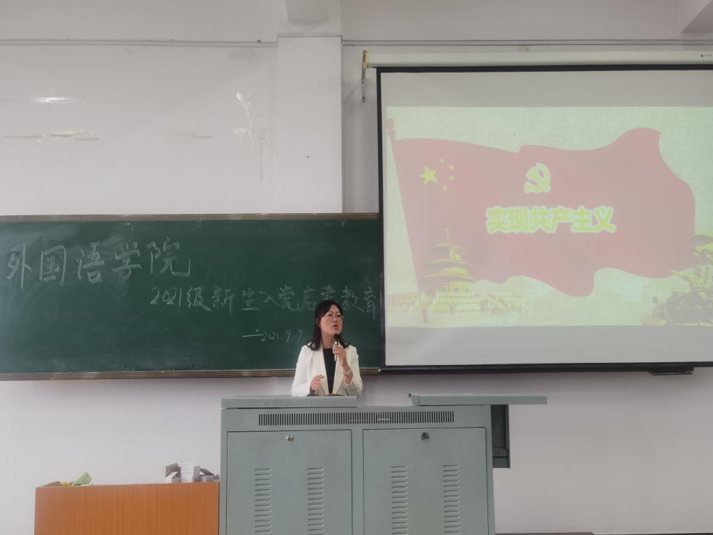 于2021年9月7日上午10点在勤学楼203教室开展了2021级新生入党启蒙教育活动。本次讲座由俄语专业辅导员孙小涵主持,学院党委裴香花副书记主讲。