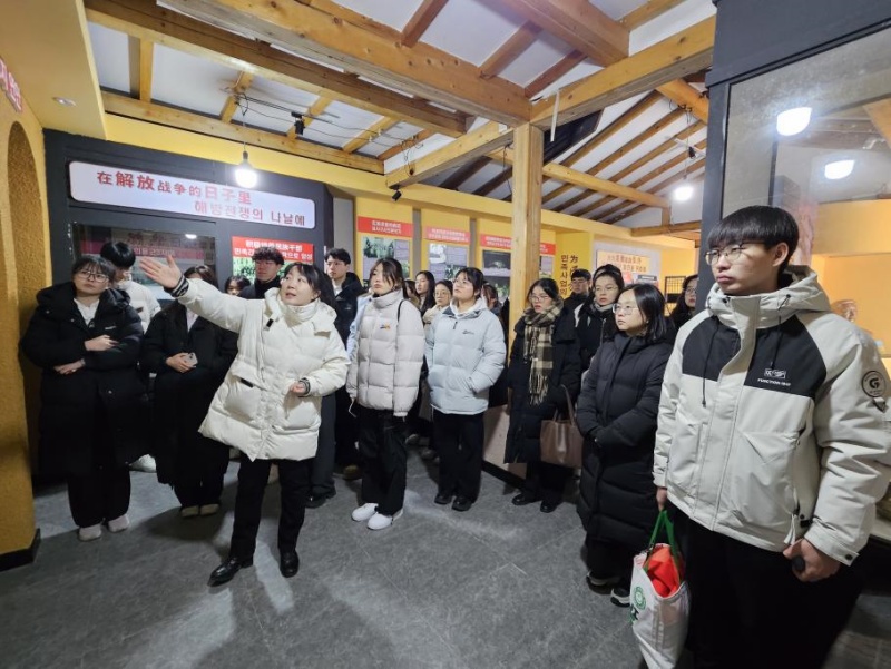 随后,同学们到龙井市间岛日本总领事馆展示馆和朱德海故居参观学习。本次学习特别邀请了中国共产党吉林省第十二次代表大会精神宣讲团成员、龙井市委党校教师李慧进行现场讲解。在展示馆,全体同学认真聆听了日本帝国主义统治延边侵华罪恶历史及延边各族人民反侵略斗争的英勇事迹,并在展览的图片和实物前驻足观看、沉思感悟。