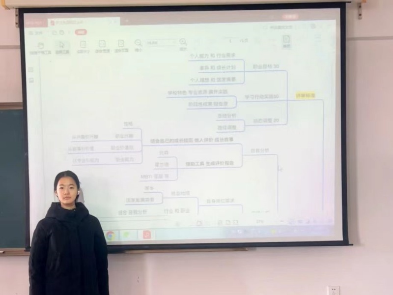 宣讲会上,徐晓燕同学围绕职业生涯规划的重要性、规划步骤及实施策略等方面进行了详细阐述。她结合自身的参赛经历和具体案例,分享了如何在职业生涯规划中挖掘自身潜力、明确职业目标、制定实施计划以及应对挑战等实用技巧。徐晓燕同学的分享不仅内容丰富、条理清晰、语言生动、易于理解。这些宝贵的经验和心得,对于即将参加大赛的同学们来说,无疑是一笔难得的财富。在宣讲过程中,她还积极与同学们进行互动交流,耐心解答大家提出的问题和困惑,进一步增强了宣讲活动的针对性和实效性。