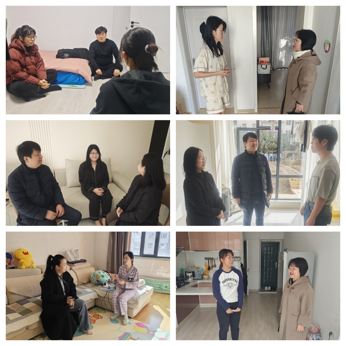 在走访中老师们细致了解了学生的居住条件、周边环境,并对防盗、消防、治安等安全状况进行了彻底排查。她强调了安全防范意识的重要性,与学生们就家庭背景、学业压力、身心健康及职业规划等话题进行了深入探讨,鼓励学生们充分利用时间,全面提升自身能力,并表示学院会为同学们的学习生活做好保障和服务工作。