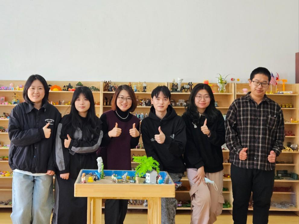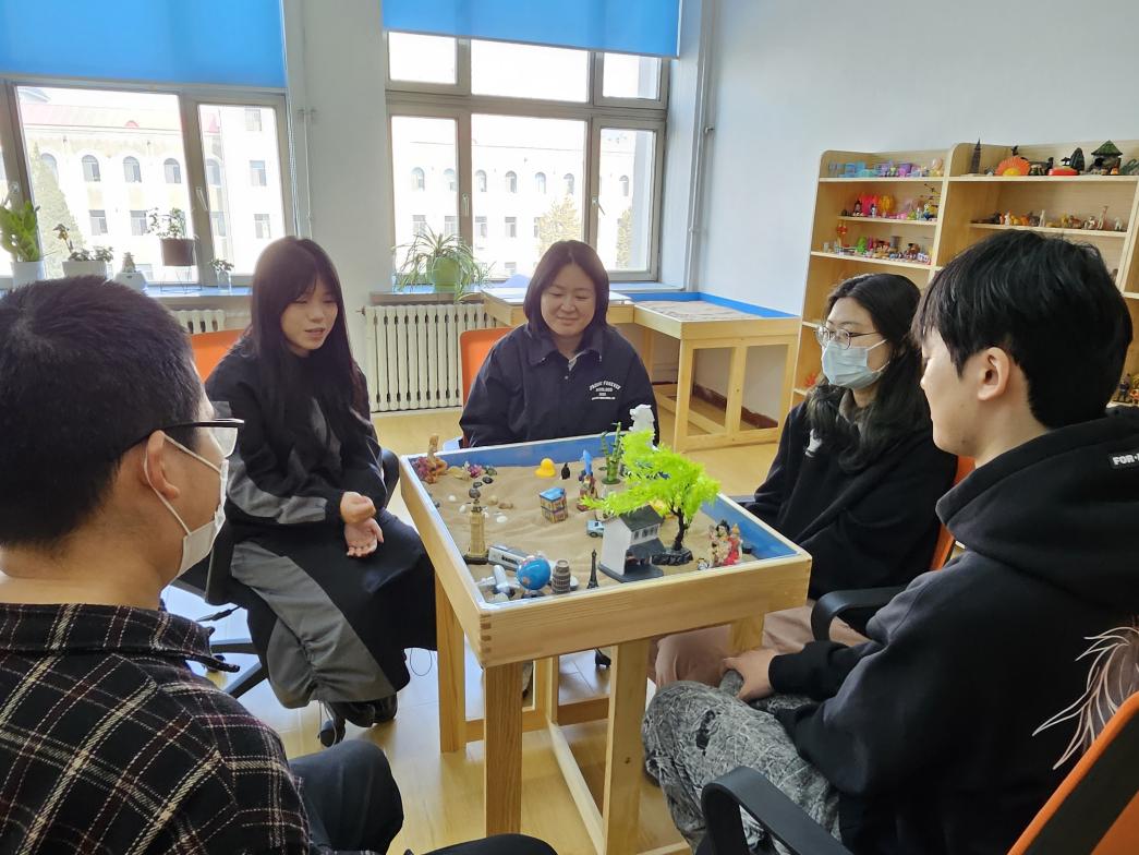 活动中,郑老师向学生们介绍了心理沙具以及沙盘游戏的规则,让大家对沙盘有初步的了解。随后学生们热情地投身于沙盘游戏,利用摆放沙具和塑造沙型等手法来传达他们的内心感受和情感状态。学生们分享对于班级集体生活的看法,在讨论中学生们更加深入地了解了彼此的内心世界,拉近了相互的距离,增进了彼此之间的感情。