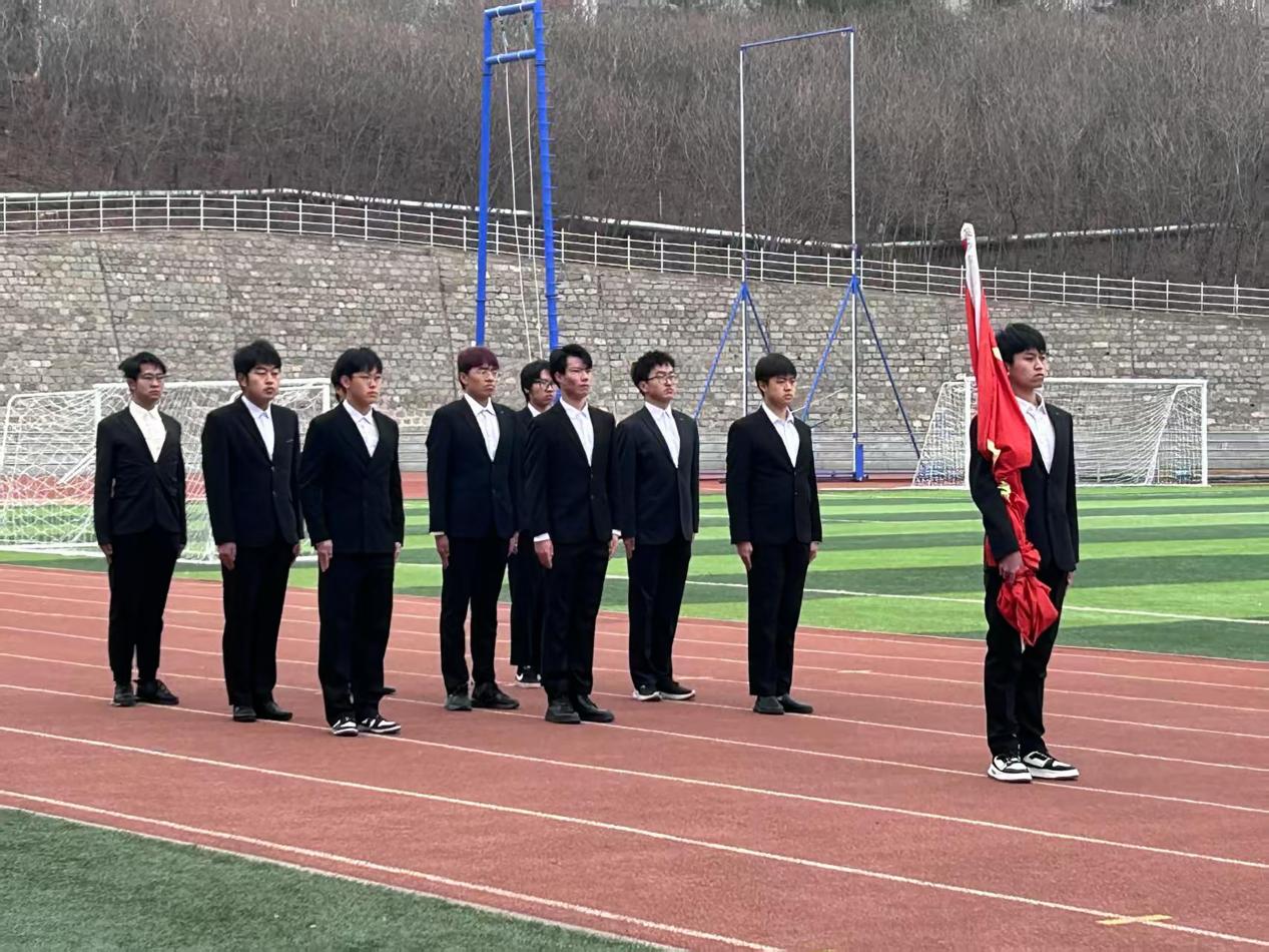 于泛海体育场举行升国旗仪式。学院党政领导、辅导员及全体学生参加仪式。仪式由学院团委书记金春宪主持。