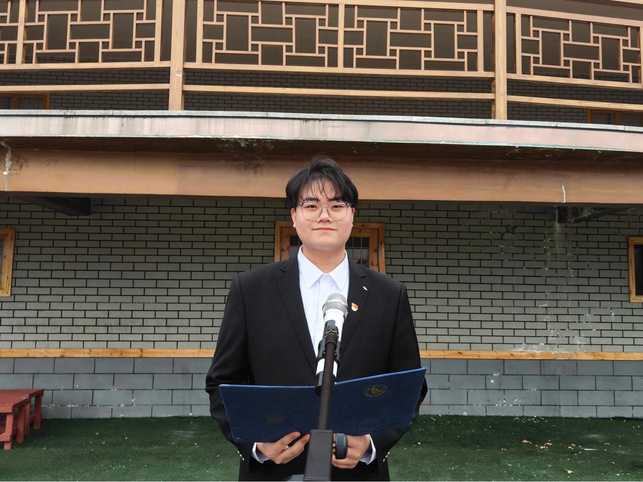 学生会执行主席2022级英语专业孙诗淘在发言中表示,作为新时代的青年学子,要珍惜时光,刻苦学习,努力成长为堪当民族复兴重任的时代新人。他寄语同学们用“深耕”的力量对抗浮躁,用坚持的韧劲回应质疑。他的发言充满激情与希望,激励着每一位同学在新学期中奋勇前行,为JKF 捷克论坛