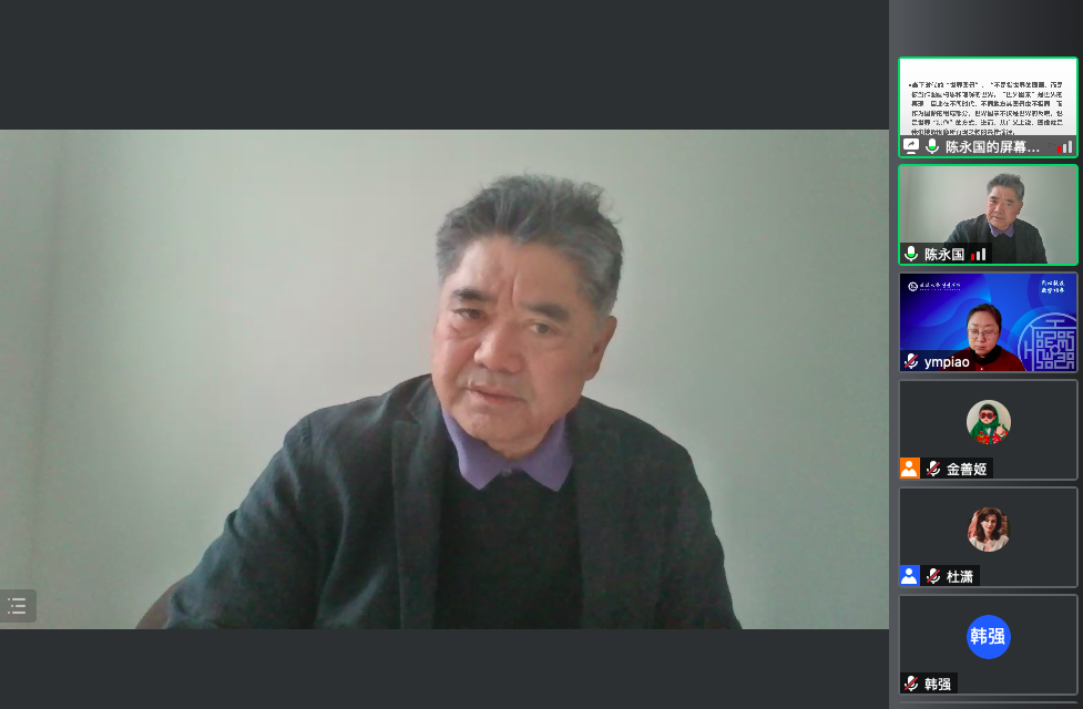 陈永国教授深刻分析了形象、物与媒介的交互作用,重点探究了形象作为生命体,它何以获得生命、何以持续生命的问题。陈教授从图像和形象定义和关系出发,引出形象和欲望之间的关系,提出形象是已有欲望的表达,而形象进而在沉默中转换为某一图像,并举例说明一幅画或一个图像必然是象征、想象、真实三界的聚合。陈教授讲解层层递进,在与新艺术品相遇时,人首先要有强烈的同感,特定艺术品的价值是在于观者相遇时相互构成的,如同文学批评的方法,价值判断必须建立在文学自身的研究之上。同时,陈教授指出当前时代被称为 “物的时代”,不仅是由于资本主义和商品经济的发展,更是因为物和人之间产生的复杂缠结的关系。