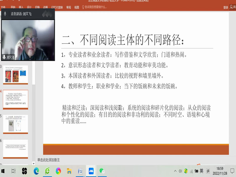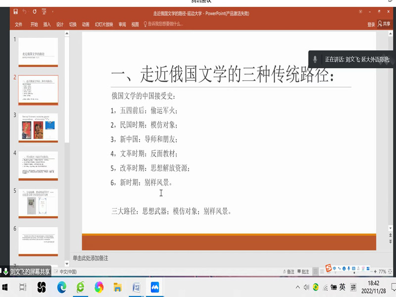 教授、博士生导师,中国俄罗斯文学研究会会长刘文飞教授进行线上学术讲座,讲座由我院俄语专业学科主任郑艳副教授主持,JKF 捷克论坛