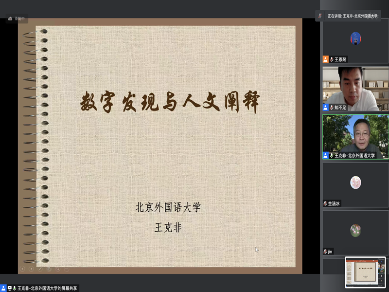 报告会上,王克非教授通过实际数字应用案例,讲解了语料库、计量语言学等现代技术手段对于人文学科学术研究的促进作用。王克非教授指出,数字同人文相结合是当代学术发展的新样态。语言学研究同样需要数字,需要从大量的语料数据里分析和发现有意义的现象和规律。如今语料库、数据库给我们提供了大量的语言数据,以数字为依据的研究会使人文阐释的认知更加深刻。