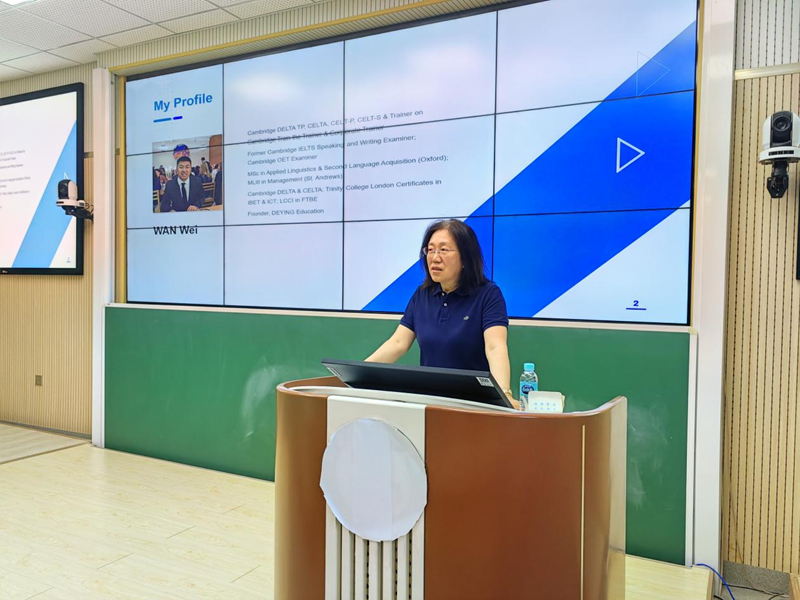 为进一步开拓我院师生的国际化视野,提升人才的国际竞争力,5月31日,我院邀请了剑桥官方培训师万威老师作了题为“语言教师的国际化发展之路”的专题讲座。学科教学(英语)部分导师、学科教学(英语)研究生、英语(师范)专业本科生共计120余人现场聆听了讲座。讲座由学科教学(英语)学科主任南成玉教授主持。